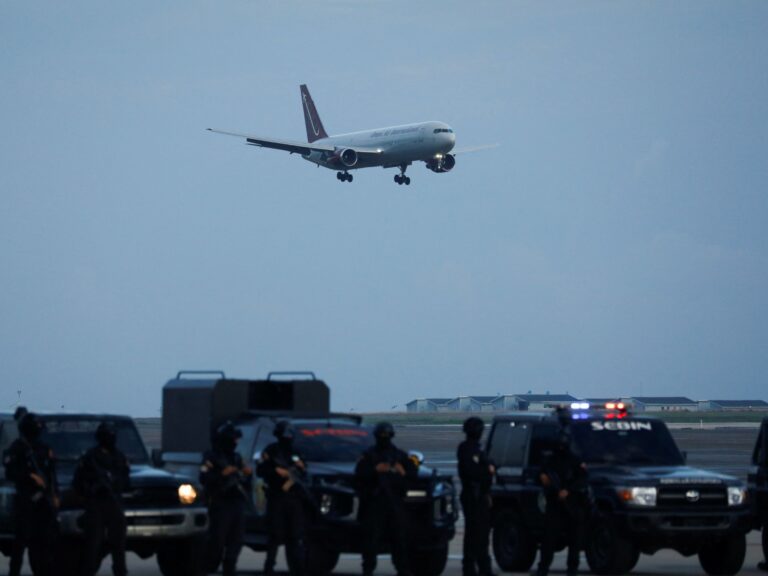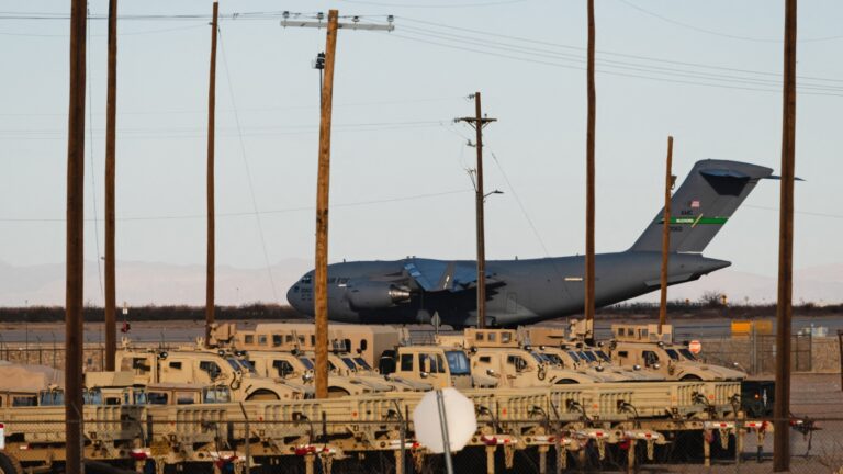 A United States Air Force Boeing C-17 used for deportation flights is…