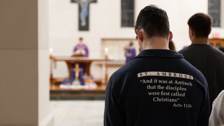 Wednesday night Mass at St. Ambrose University attracts a congregation of mostly…