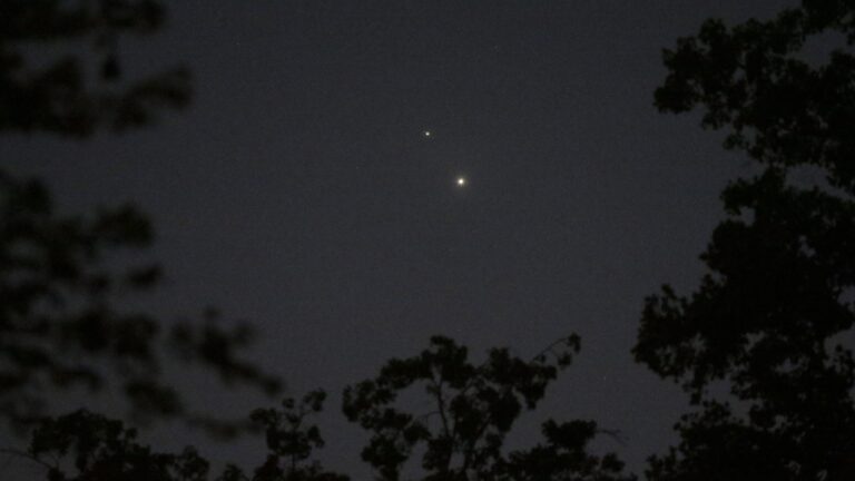 The planets Venus (bottom) and Jupiter are seen in the sky above…