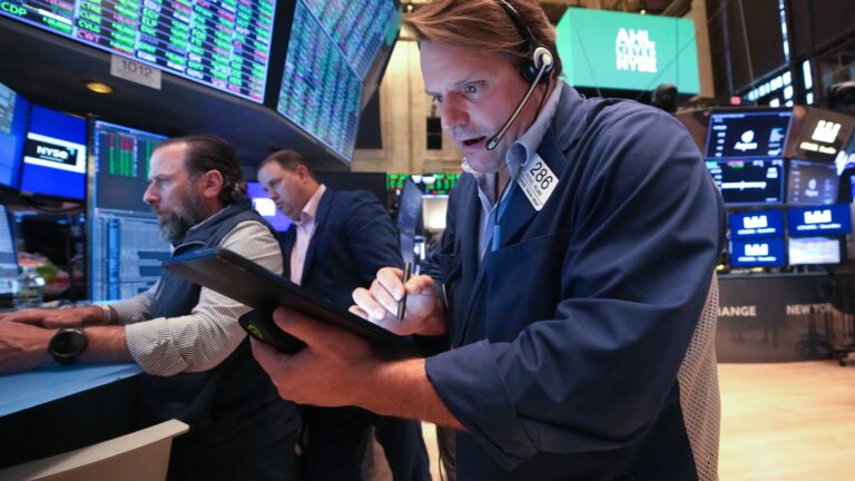 Traders work on the floor of the New York Stock Exchange (NYSE)…