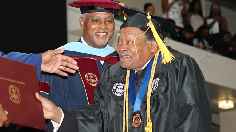 Linwood Riddick, who turns 80 on Monday, accepts his bachelor’s degree at…