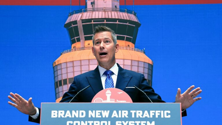 U.S. Transportation Secretary Sean Duffy speaks at an event unveiling a new…
