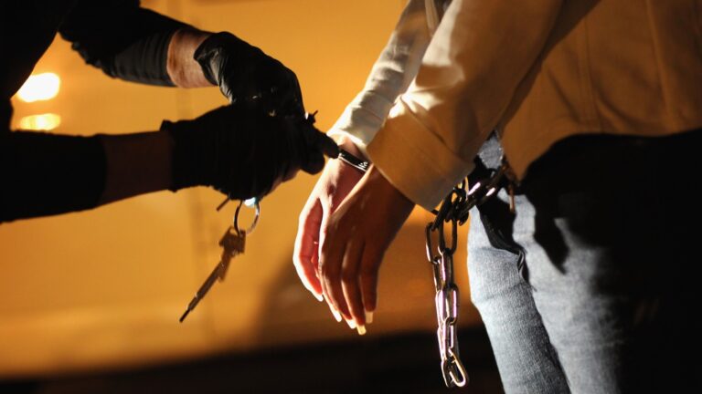 An Immigration and Customs Enforcement officer prepares a Salvadoran immigrant without legal…