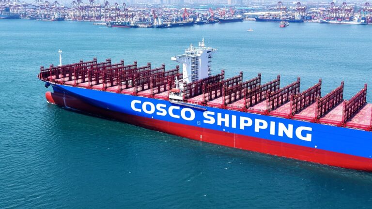 A VIOUS COINT CONTAINER SELP to a container terminal in Qistdao in…