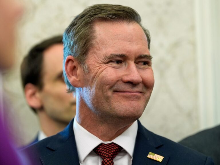 In this file photo from Feb. 14, 2025, Mike Waltz speaks with…