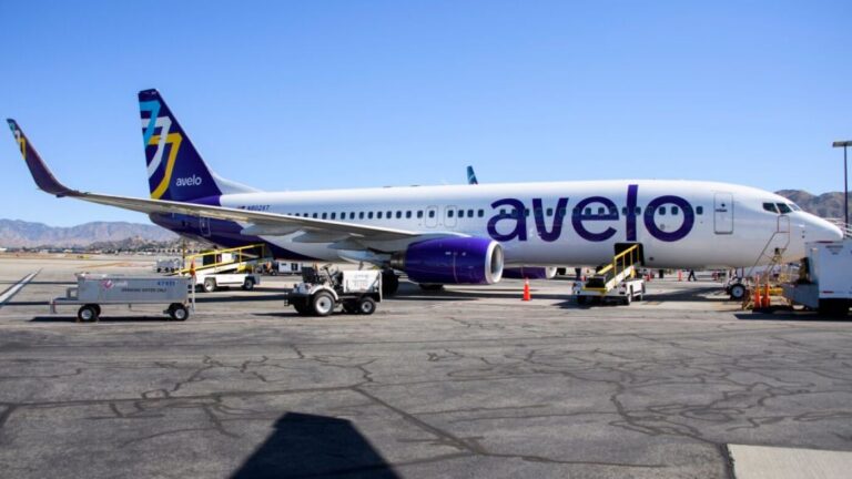 An Avelo Airlines jet on the tarmac at Hollywood Burbank Airport in…