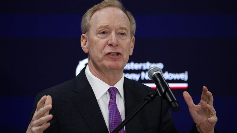 President Micosoft Brad Smith Standing during Signing’s ceremony. The price of the…