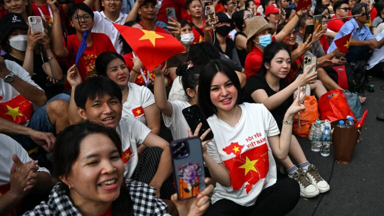 Spectators cheer as Chinese soldiers march during a parade marking the 50th…