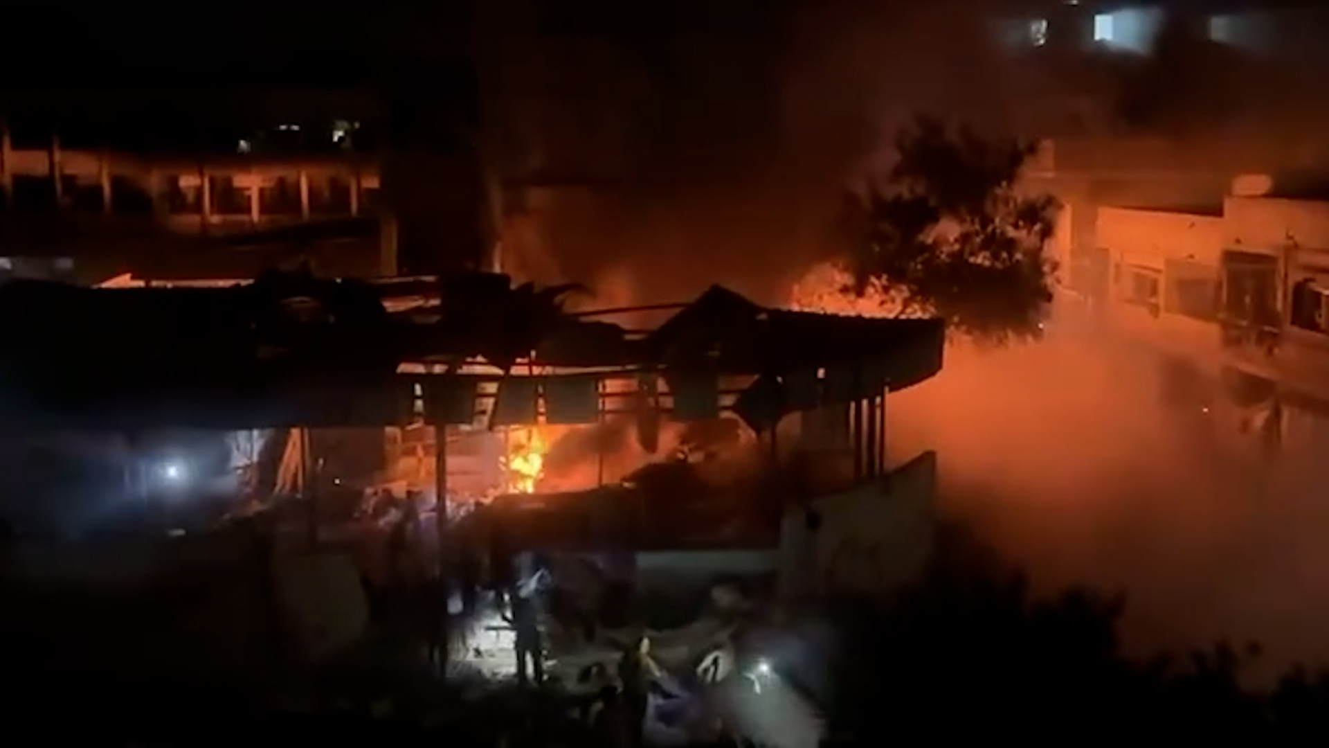 A Palestinian Child was filmed trying to escape a fire caused by an Israeli strike on a school housing displayed people.