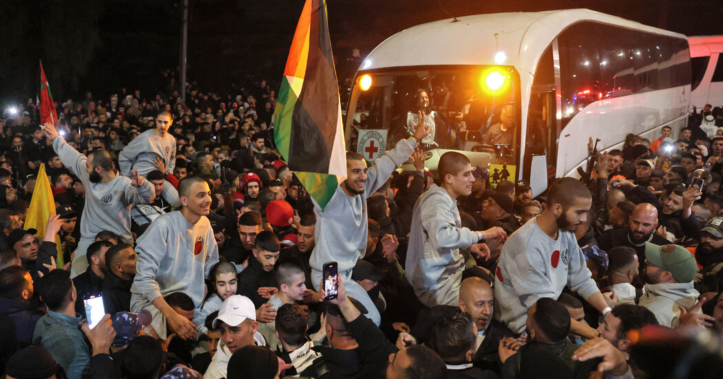 Ms. Faisal was among a throng of Palestinian families gathered in the West Bank city of Ramallah on Thursday, eagerly waiting to welcome more than 100 Palestinian prisoners being released from Israel in exchange for hostages held in Gaza. It was the third hostage-for-prisoner swap in an ongoing cease-fire deal between Israel and Hamas. During the first 42 days of the agreement, Hamas has pledged to free at least 33 hostages in exchange for over 1,500 Palestinians jailed by Israel.