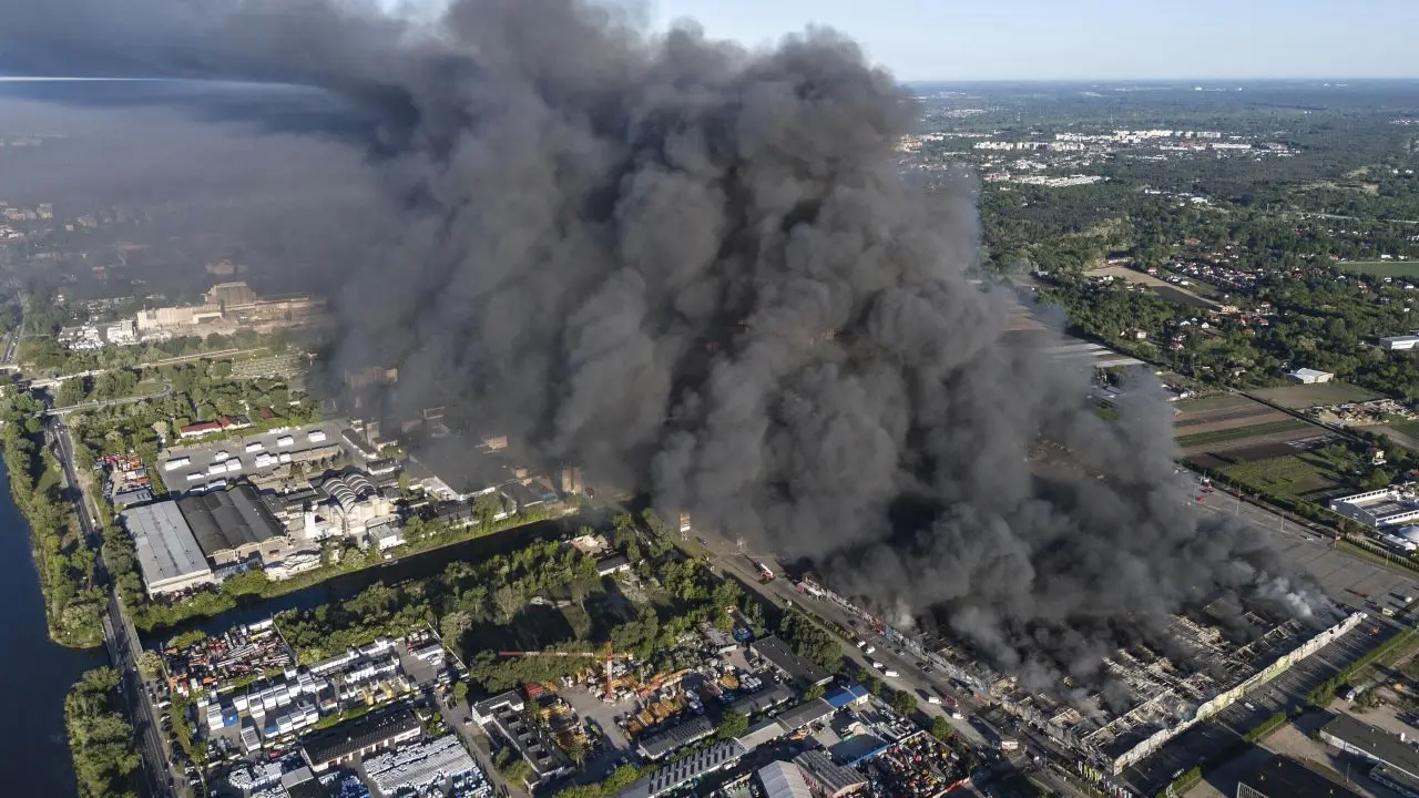 The fire is burning from a huge trade complex in Warsaw, Poland, May 12, 2024 (AP Photo/Norbert Ofman, File)
