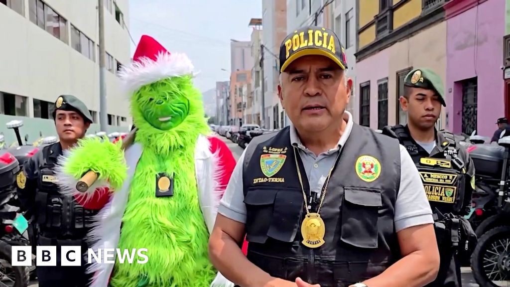 An undercover cop dressed as the Grinch has carried out a drug bust in Lima, Peru.