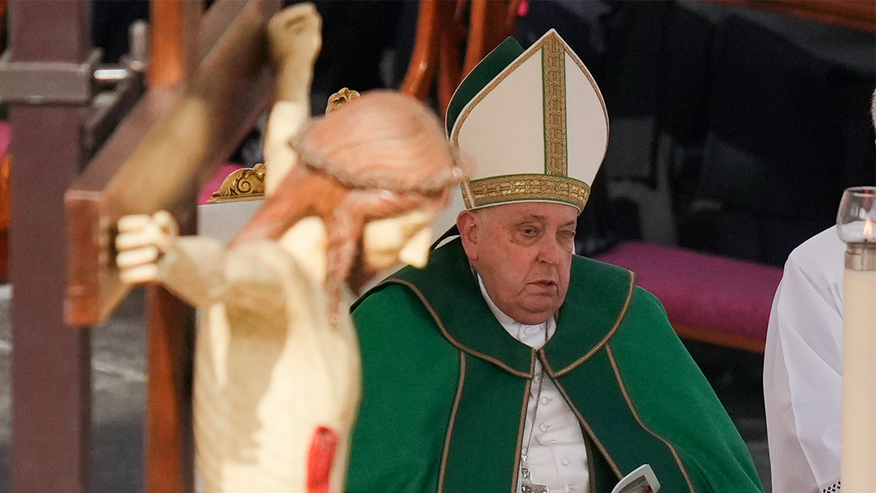 Pope Francis presides over the Mass for the Jubilee of the Armed Forces at St. Peter’s Square in the Vatican, Sunday, February 9, 2025. (AP)