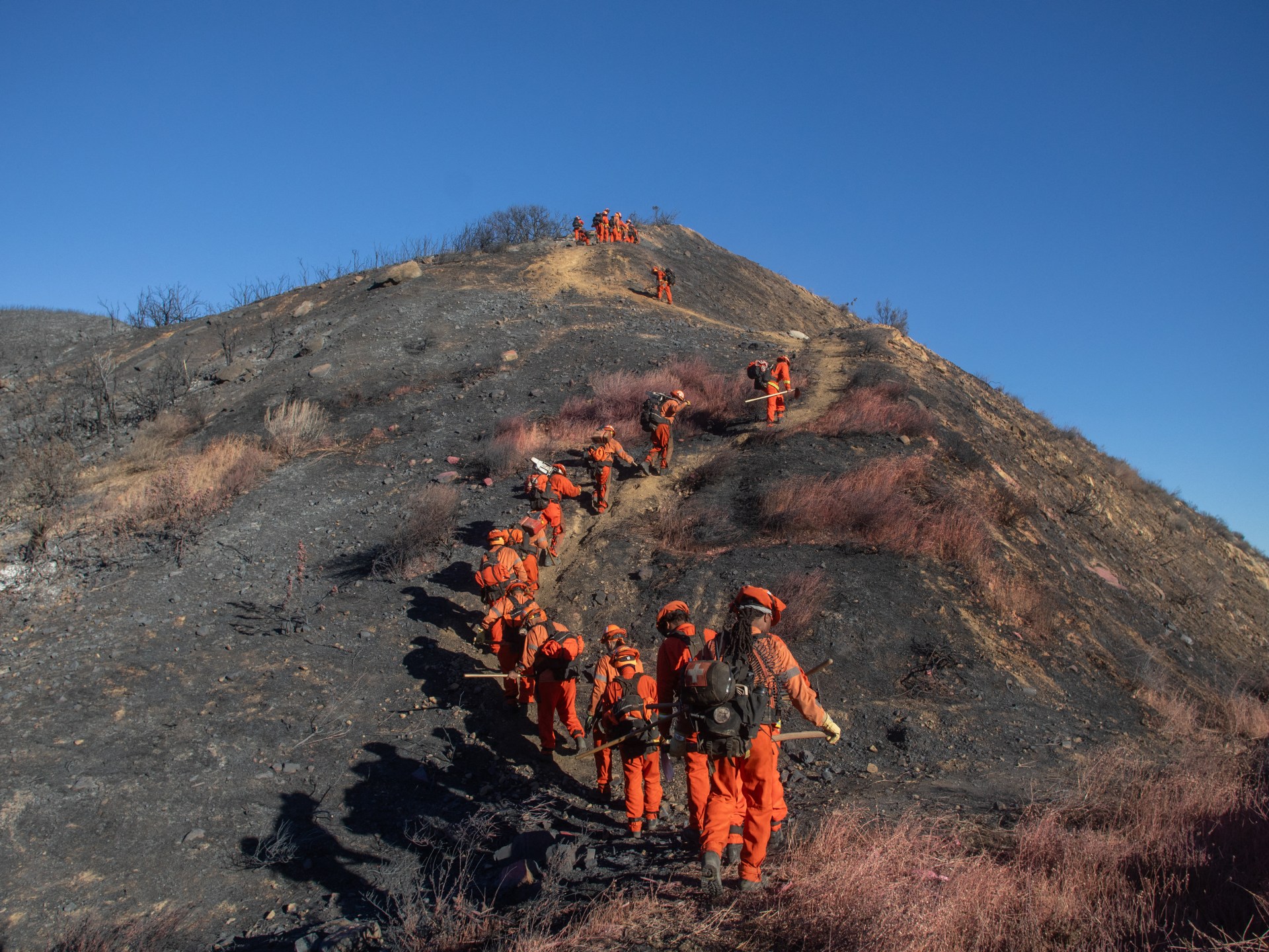 Firefighters who battled through the night to tame a new blaze that erupted near los angeles appeared to be made progress, even as dangerous fire weather continued through wood Southern california.