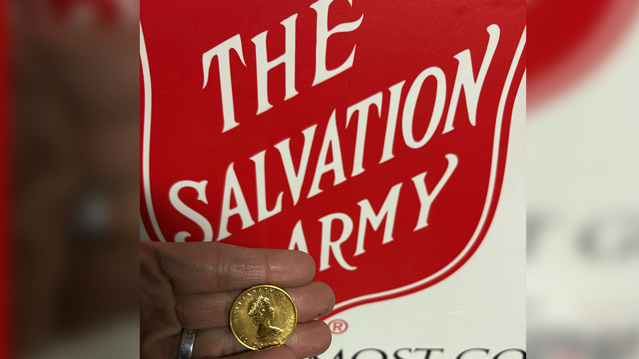 An anonymous Good Samaritan donated a rare gold coin to the Salvation Army’s Red Kettle in Washington, Pennsylvania, after a donor dropped it inside amid the holiday rush. (Salvation Army)