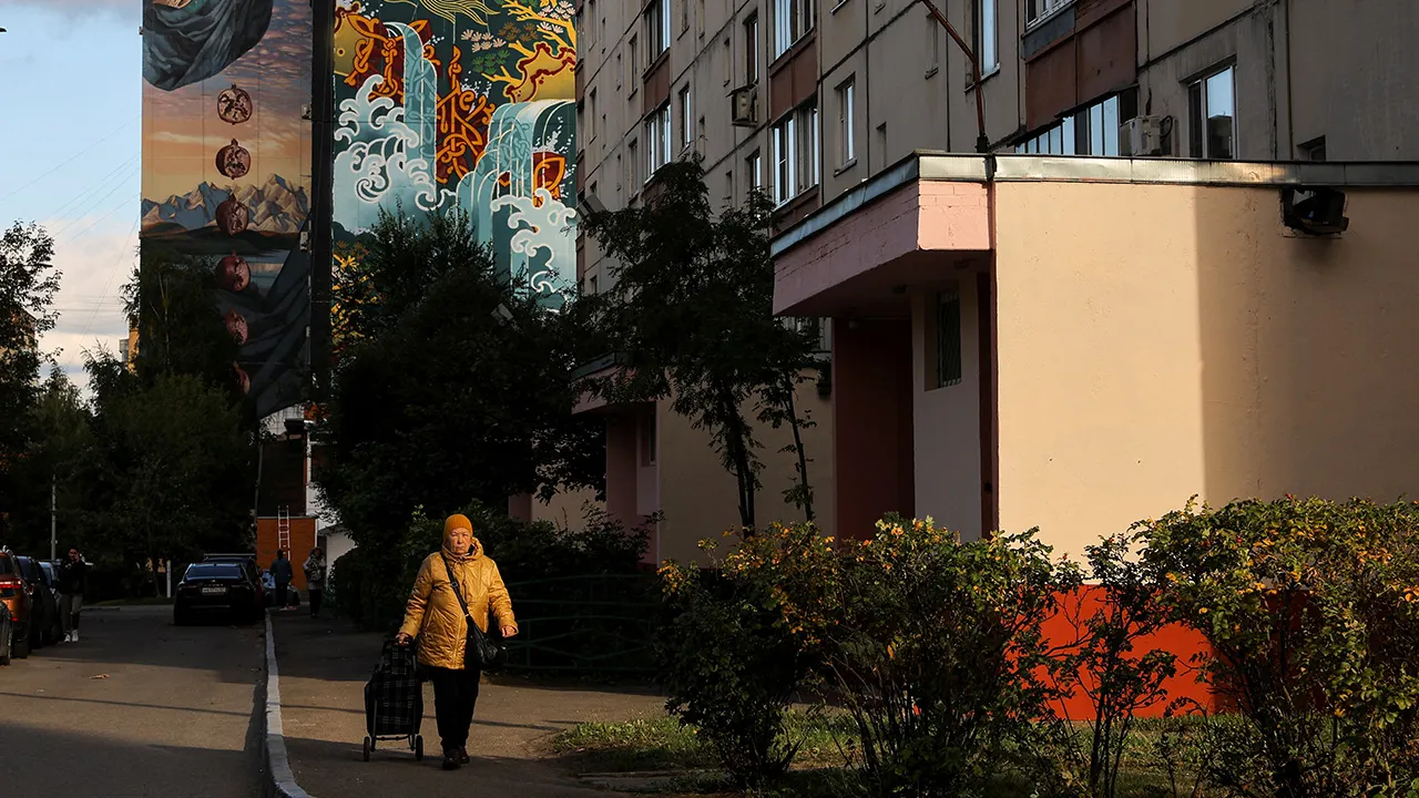 A woman walks down the street in Balashikh, a city outside Moscow in Russia, in September 2022. (Reuters/Evgenia Novozhenina)
