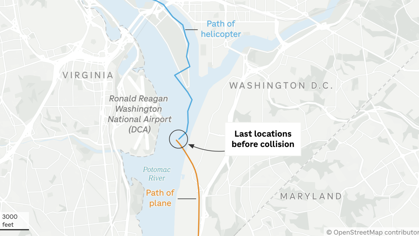 When the American Airlines regional jet and a Black Hawk helicopter crashed in midair Wednesday night, the civilian plane was circling Reagan National Airport preparing to land, just before 9 p.m. E.T.