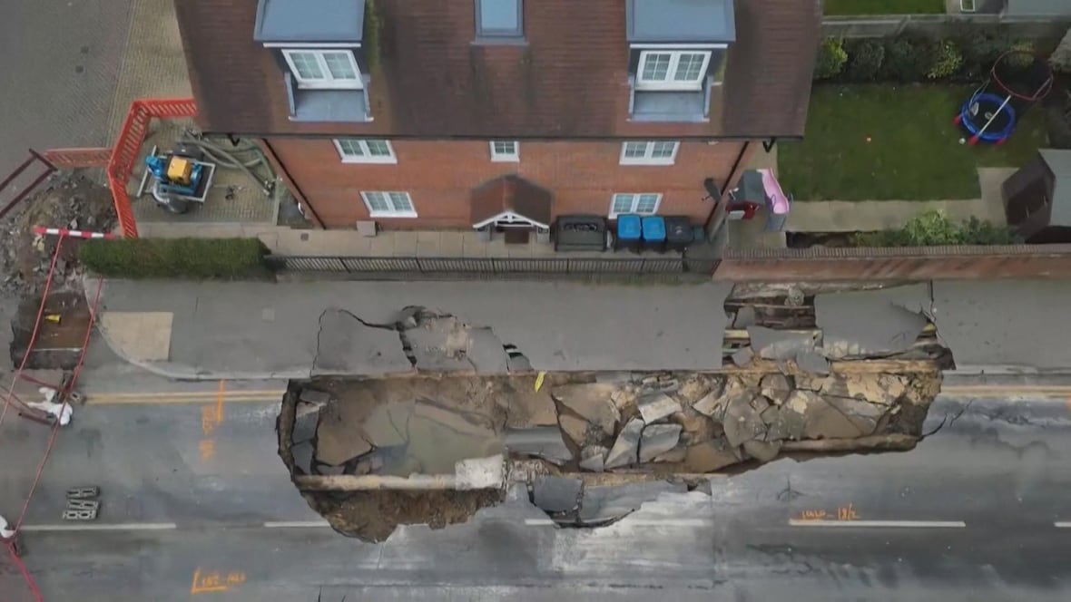 A growing sinkhole on the main street in Godstone, England, has local residents and officials worried. Some properties are cordoned off, local officials say, but everyone is being urged to avoid the area while structural experts assess it.