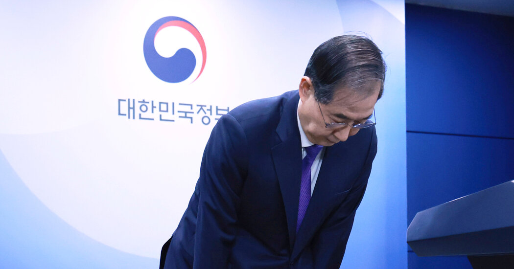 Following Mr. Han’s resignation, Finance Minister Choi Sang-mok, the next in line in the government hierarchy, takes over as acting president.