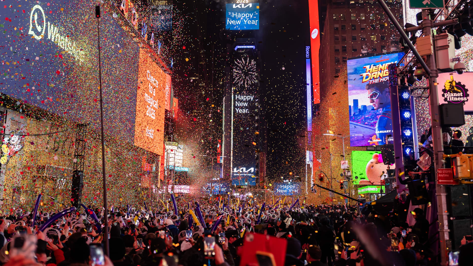 A view of the dance floor during the Times Square New Year 2025 celebration on December 31, 2024 in New York City.