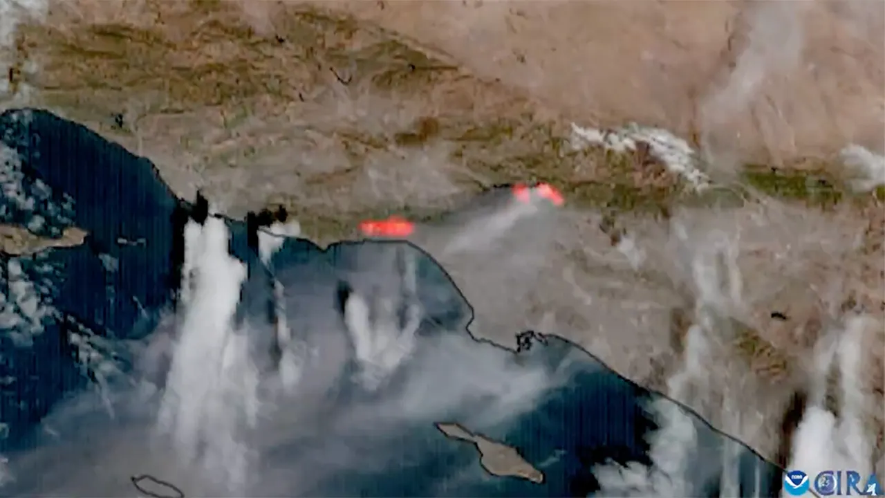 “Devastating #PalisadesFire and #EatonFire continued to burn in parts of Southern California today,” NOAA captioned a video posted on Instagram Wednesday afternoon.