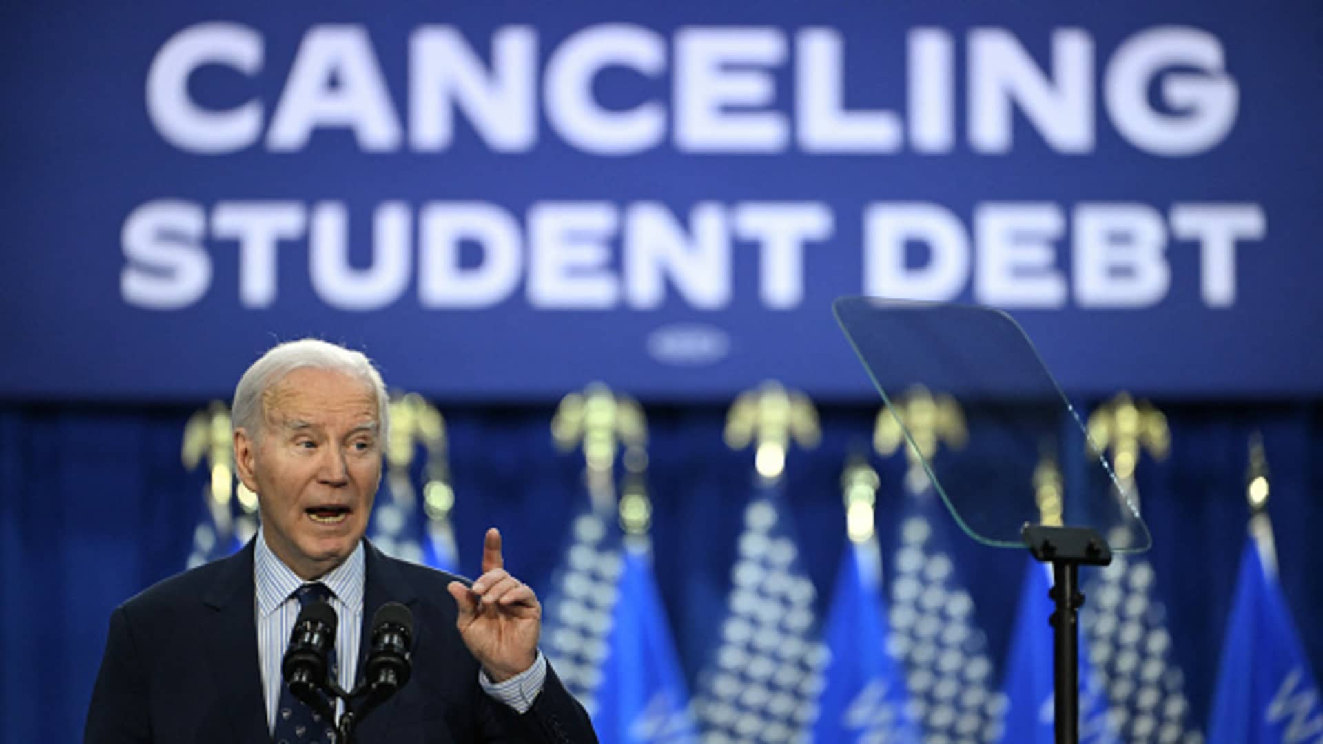 U.S. President Joe Biden speaks about student loan debt relief at Madison Area Technical College in Madison, Wisconsin, on April 8, 2024.