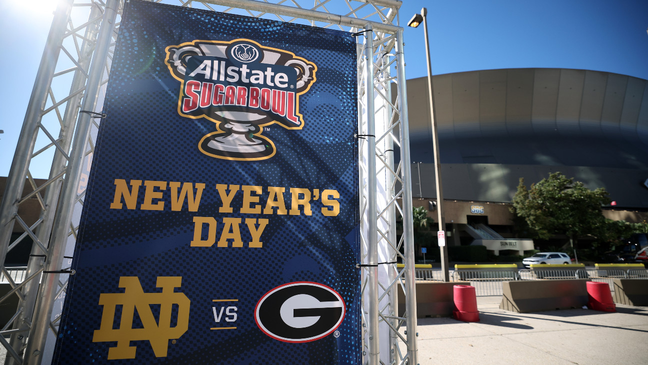 The Playoff quarterfinal at the Sugar Bowl between Georgia and Notre Dame has been postponed after a truck plowed into a New Year’s crowd about a mile away early Wednesday, killing at least 10 people.