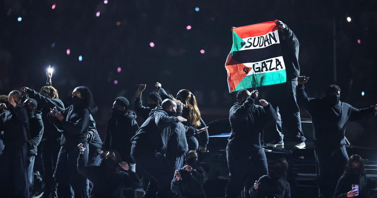 A performer at Kendrick Lamar’s Super Bowl halftime show unfurled a flag emblazoned with the words Sudan and Gaza in a protest over the two wars roiling the Middle East.