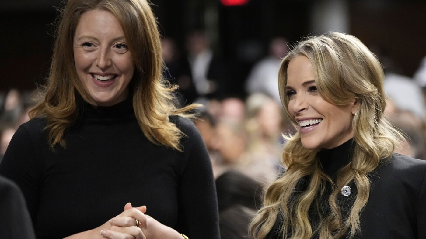 Dr. Casey Means (left) stands with journalist Megan Kelly at a confirmation hearing for Robert F. Kennedy Jr. for the secretary of Health and Human Services post at the Capitol in Washington, D.C., on Jan. 29.