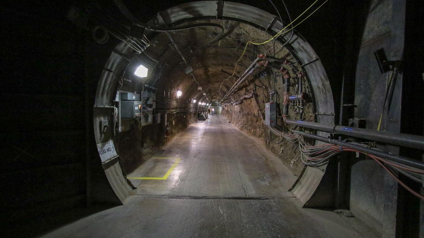 “This was designed to be a nuclear test location originally,” Funk explains. In the early 1960s, nuclear tests went underground to protect people and the environment from dangerous radioactive fallout. In fact, somewhere in the maze of tunnels we’re walking through is a sealed shaft from a full-scale nuclear detonation — the Ledoux test in 1990.
