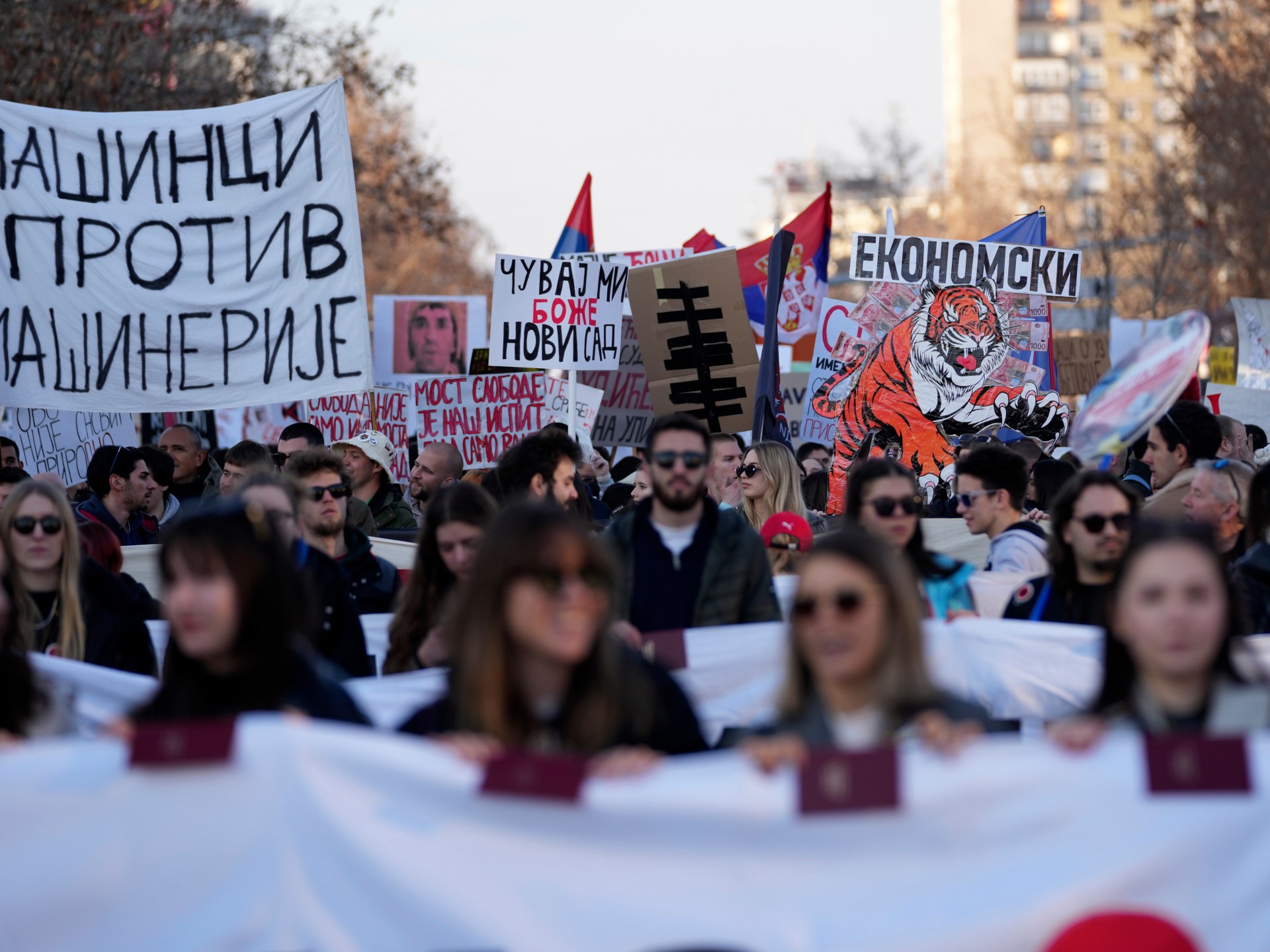 Thousands protest in Serbia to mark three months since deadly roof collapse | News