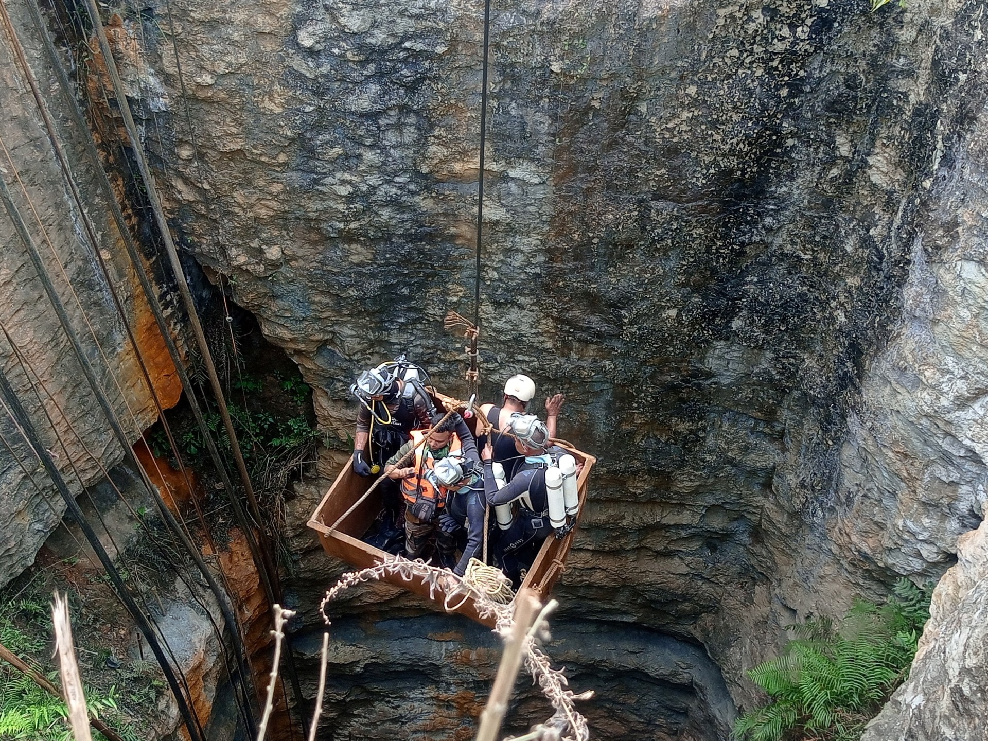 Photographs shared by the army on social media showed rescue workers with ropes, cranes and other equipment standing at the edge of a large, vertical mine.