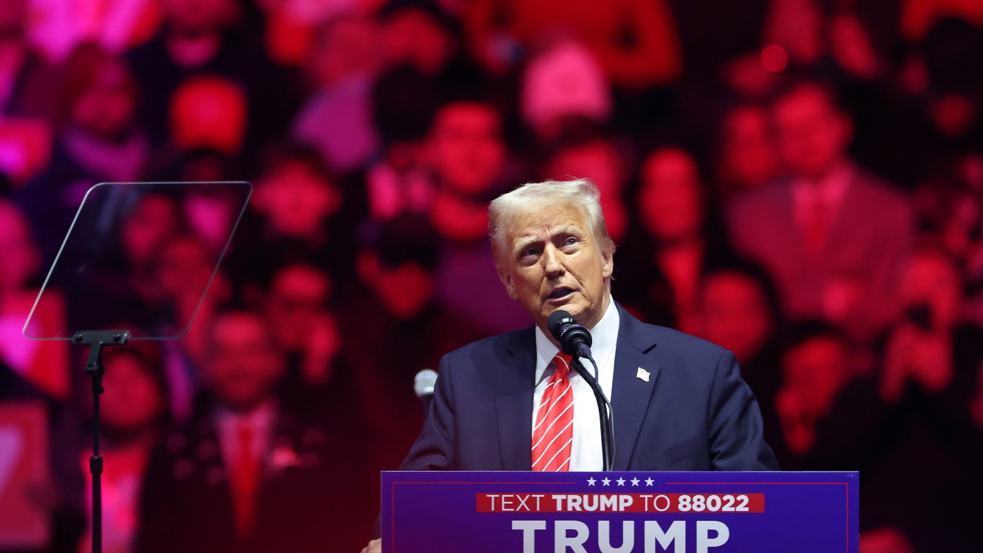 Donald Trump speaks at his victory rally at the Capital One Arena on Sunday.