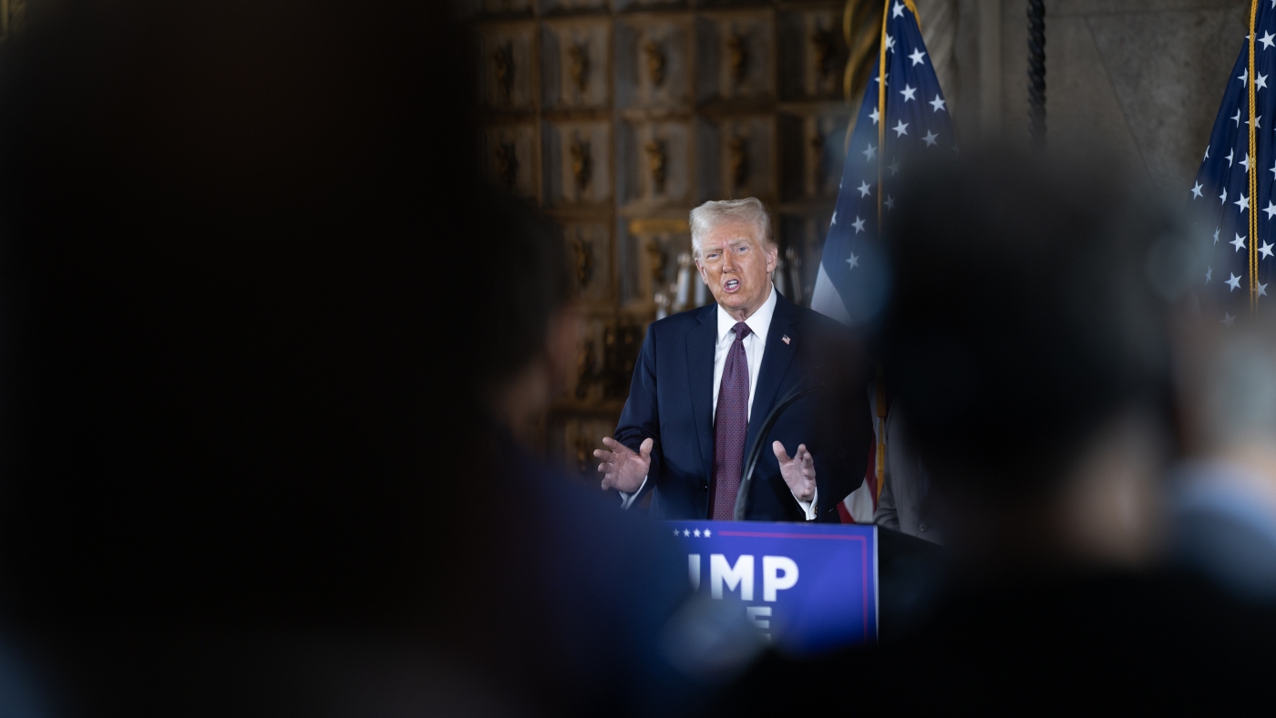 President-elect Donald Trump speaks to members of the media during a press conference at the Mar-a-Lago Club on Jan. 7 in Palm Beach, Fla. Trump will be sworn in as the 47th president of the United States on Jan. 20.