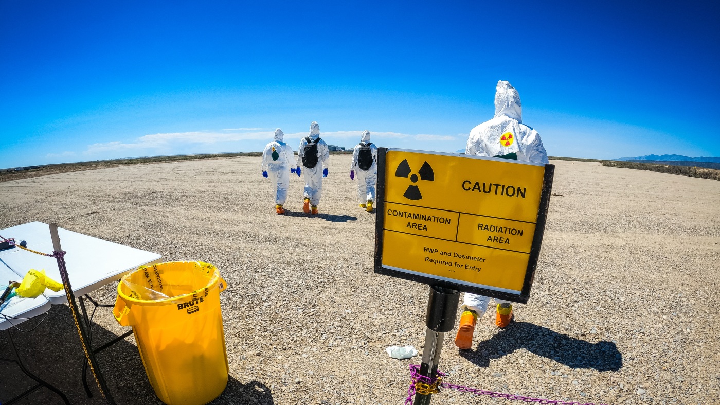 Members of the Nuclear Emergency Support Team training for a radiological contamination scenario.