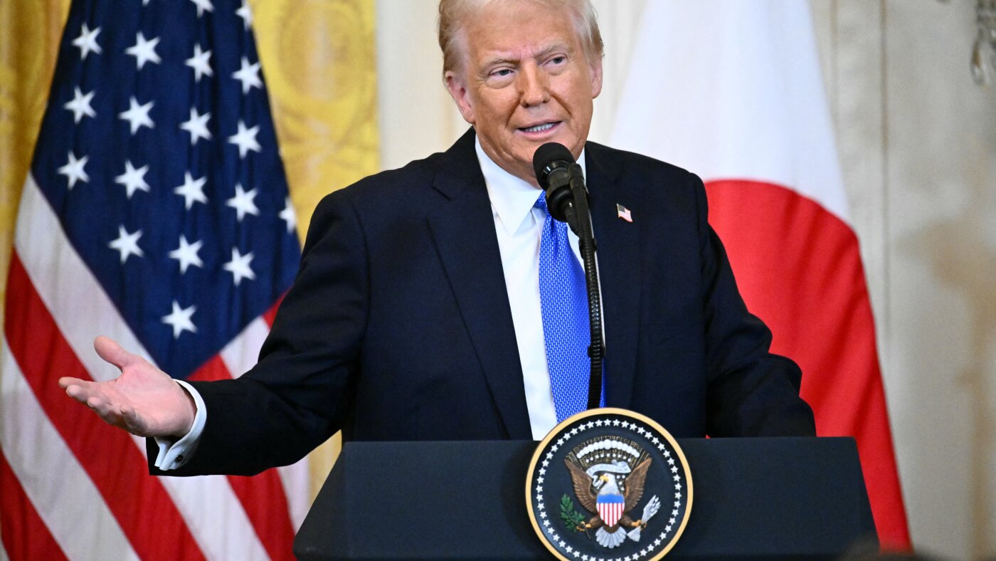President Trump speaks during a joint press conference with Japanese Prime Minister Shigeru Ishiba following talks, in the East Room of the White House on Friday.