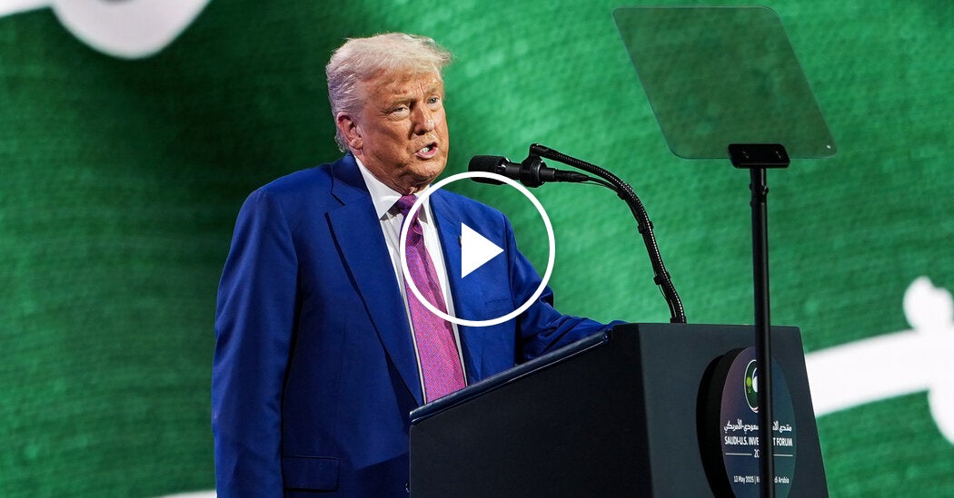 President Trump told a business forum in Saudi Arabia that he would lift sanctions on Syria. The announcement came a day before an expected meeting with Syria’s new president, who led the rebel alliance that ousted Bashar al-Assad.