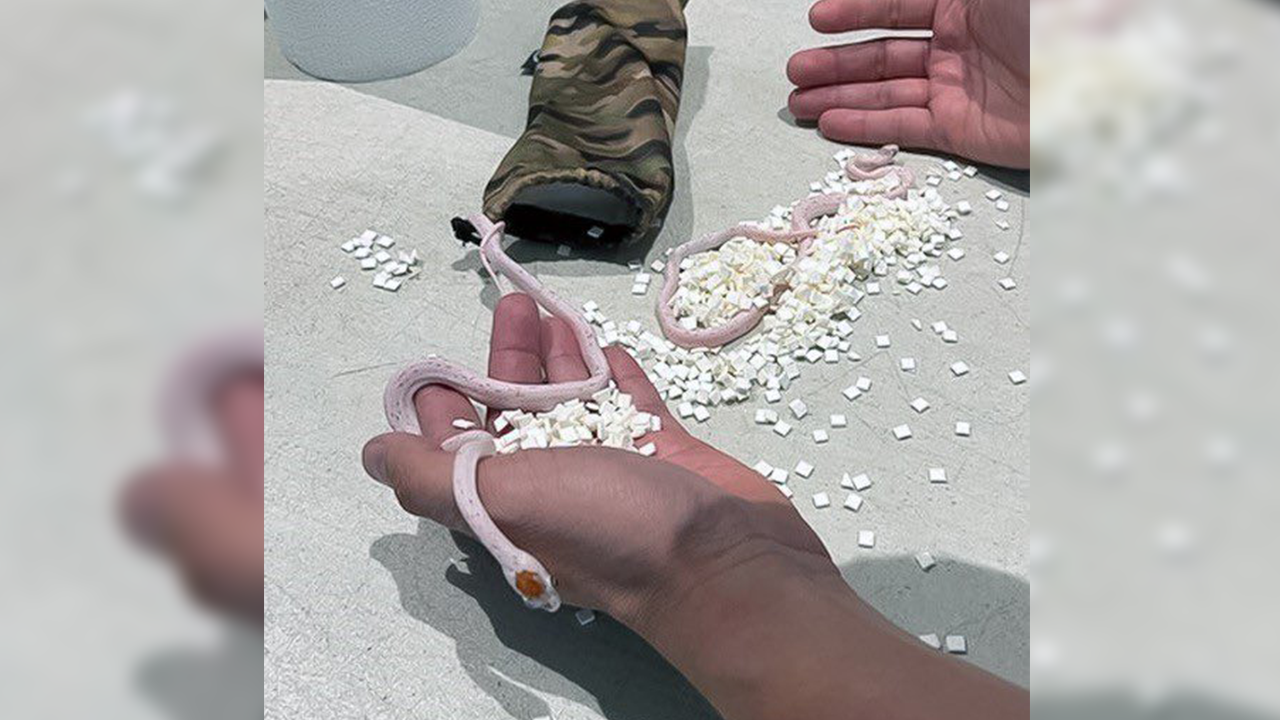 A man flying from Miami tried to sneak live snakes into his pants as he approached a security checkpoint in April 2024. (TSA)