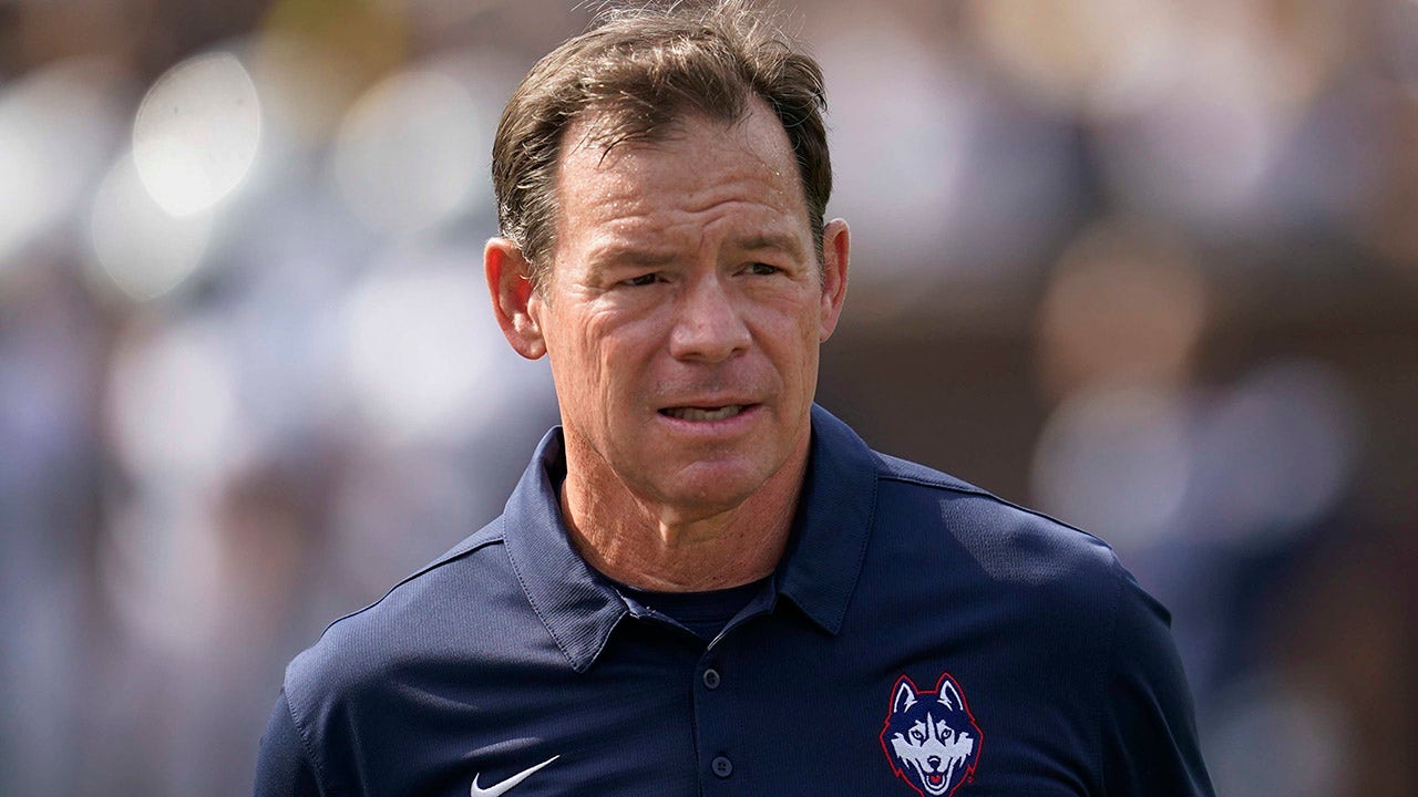 Connecticut head coach Jim Mora watches before the NCAA college football game against Michigan in Ann Arbor, Michigan on September 17, 2022. (AP Photo/Paul Sancya, File)
