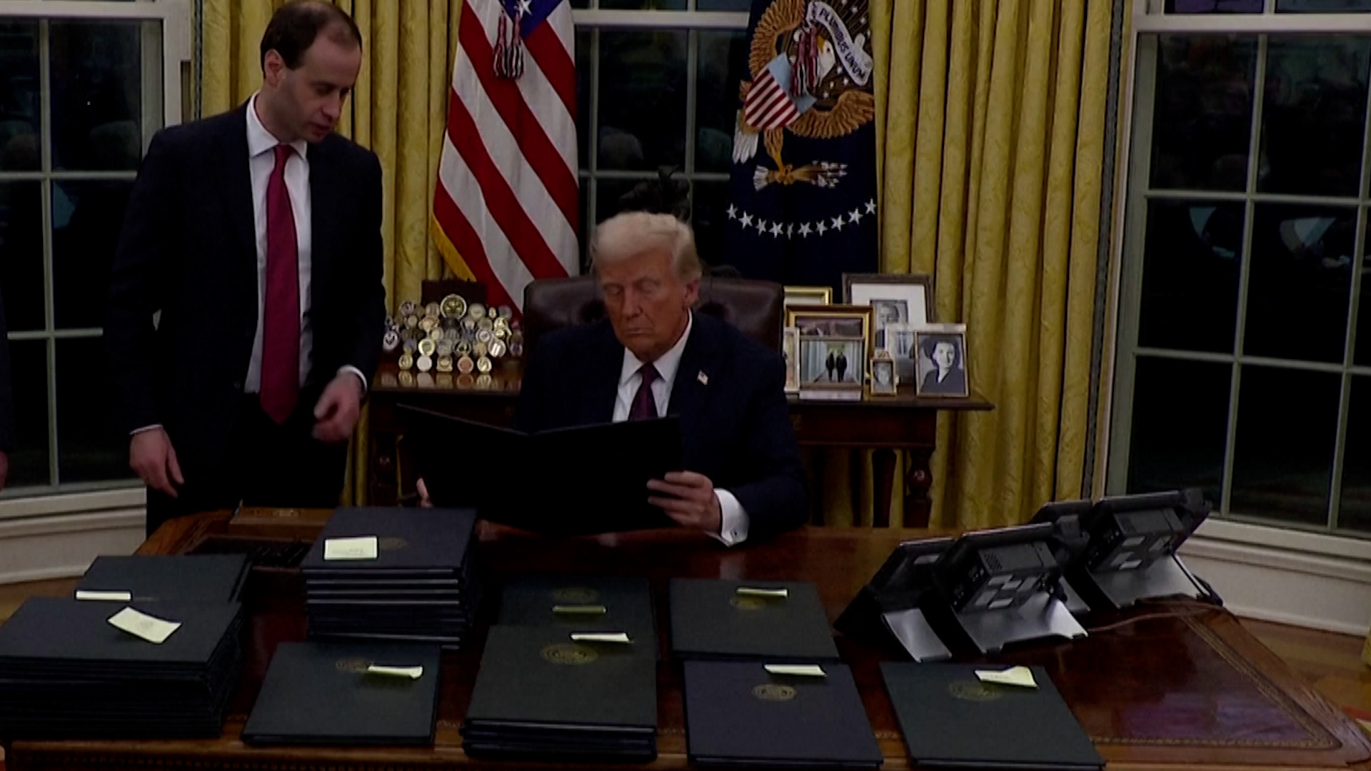 US President Donald Trump told reporters he was “not confident” of the Gaza ceasefire deal holding and said the territory had to be rebuilt in a “different way”, as he signed executive orders on day one of his new term.