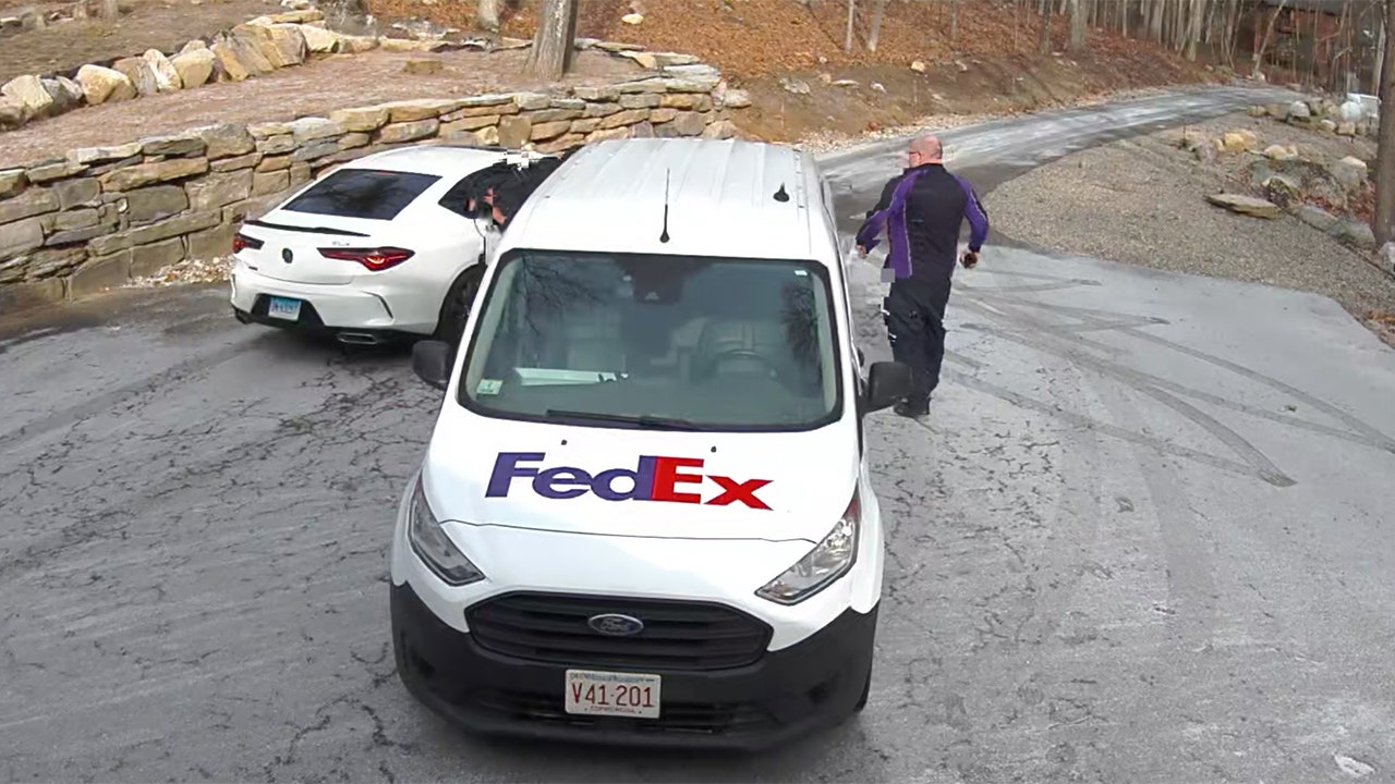 The thief was seen on video snatching the package from the hands of the FedEx driver. (Harvard Police Department)
